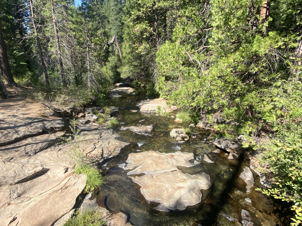 20.09., Samstag: Leihwagen abholen (leider 1,5h bei Avis am Schalter anstehen müssen! 🙁 ), anschließend einräumen. Leider ist die Ladefläche nicht wie Robin Vorgängermodell nach Umklappen der Rücksitze keine durchgehende Fläche – hier stehen die Rückenlehnen hinten ca. 5 cm hoch und das Kopfteil ca. 15 cm. Daher noch nach Möglichkeiten gesucht, wie man trotzdem die Ladefläche mit ca. 190 cm als „Bett“ nutzen könnte. Leider war das wie ich Abends herausfand keine optimale Lösung! 🙁 Nach der Abfahrt zu einen schönen Stellplatz wo Robin schon mal gecampt hatte im Stanislaus-Forest Park, stellte sich bei 9°C Nachts schnell heraus, dass es SEHR unbequem ist, Robins Schlafsäcke zwar schön warm sind, ich sie aber nicht über meine „Plautze“ bekomme. Daher eine sehr unruhige Nacht mit max. 5h Schlaf, der immer wieder unterbrochen wurde. Andererseits war das aber gut, da ich bereits um 7h auf Achse war und bei der Fahrt tolle Landschaft auf teilweise recht engen Straßen mit fast keinem Gegenverkehr genießen konnte.