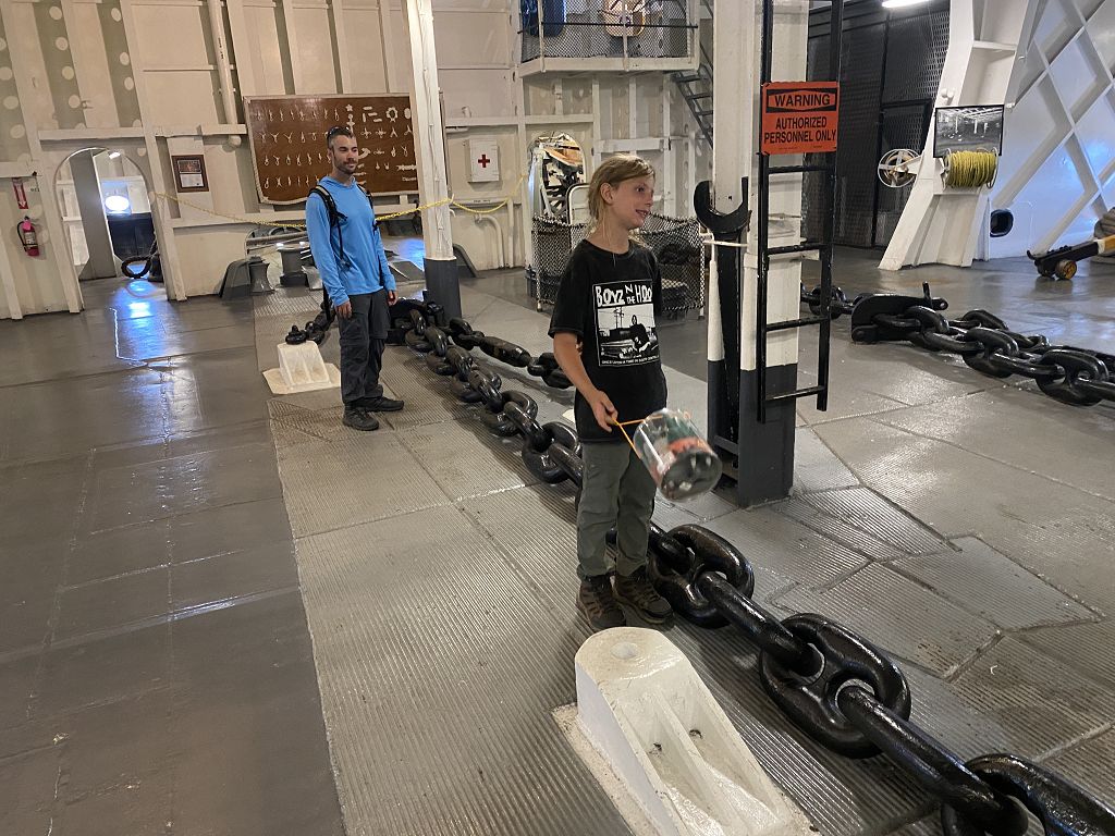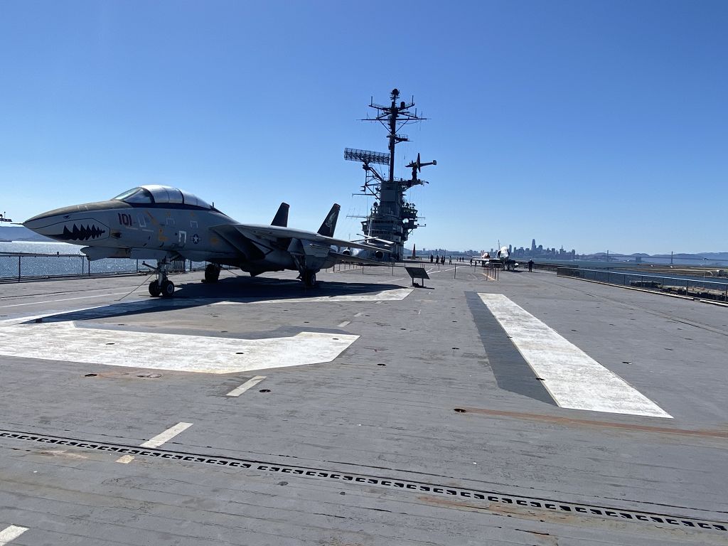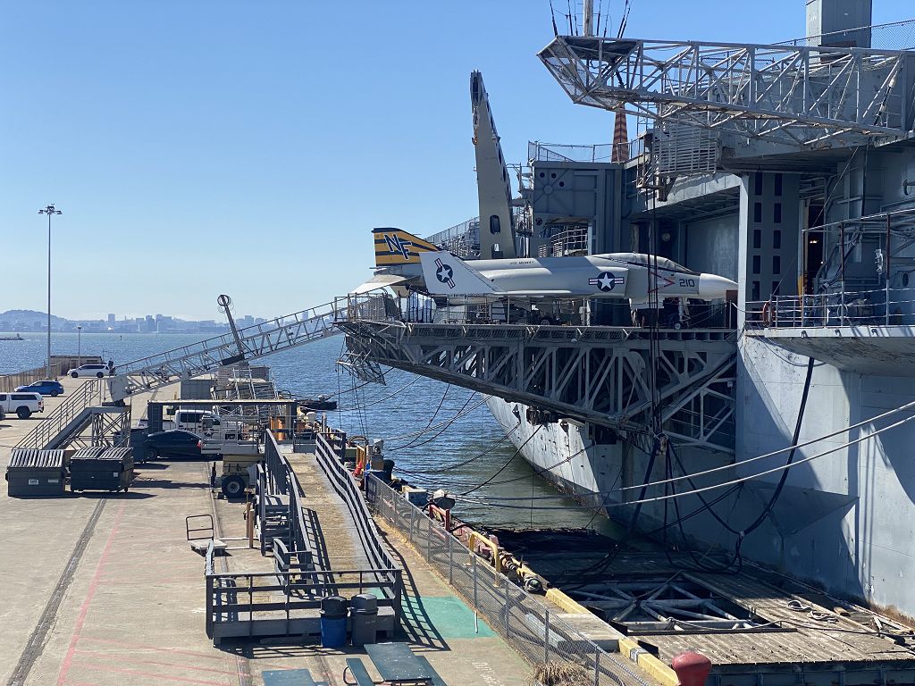 02.08., Montag: Da ich solch lange Motorradtouren schon seeeehr lange nicht mehr gemacht habe, taten mir der Ar…, das Knie und was weiß ich noch nicht alles weh. Somit waren auf dem Weg nach Oakland 3 kurze Stopps angesagt, obwohl es eigentlich nur gute 2h Fahrt gewesen wären. Bei einem der Stopps fand mein Enkel gesteigertes Interesse an einem Geländemotorrädchen. 🙂 Ziel war die USS Hornet, die während des Kriegs gegen Japan in Dienst gestellt wurde, und bis ca. 1970 dies mit Bravour erledigte. U. a. war sie auch der Flugzeugträger, der die Apollo 11 Kapsel barg.