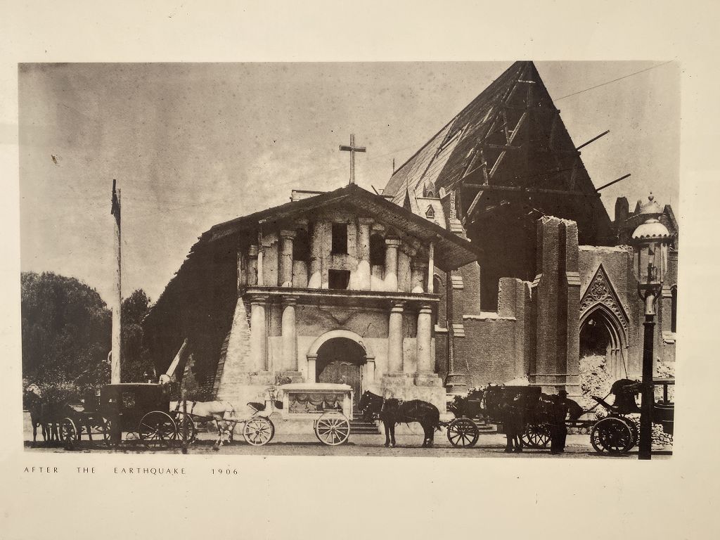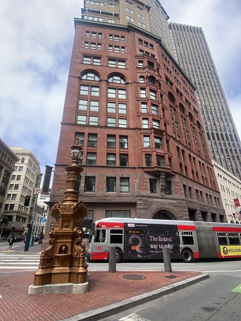 Das „Old Chronicle Building“ hatte als eines der wenigen Häuser 1906 das Erdbeben überstanden. An dem Brunnen davor wird jährlich eine Gedenkfeier abgehalten.