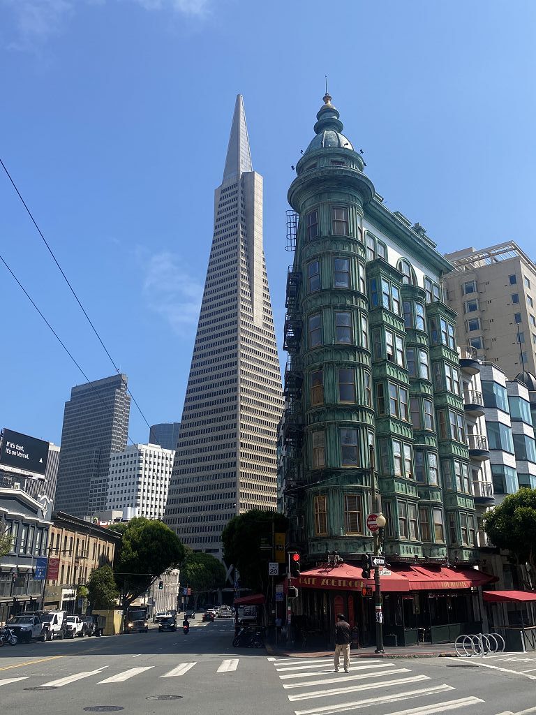 Das 2te Foto zeigt 65 Jahre „Hochhausbau“ in SFO, vorne den „Columbus Tower“, dahinter die „Transamerica Pyramid“.