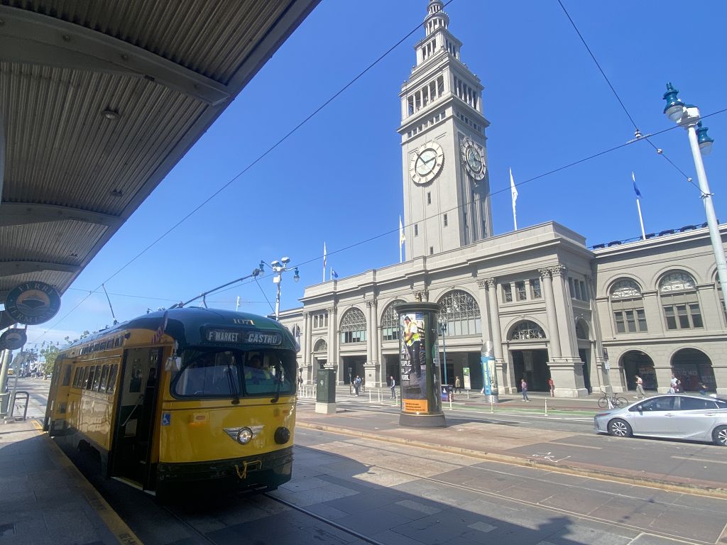 Danach eine historische Straßenbahn vor dem „Ferry Building“ und zuletzt der “ Cupid’s Span“ vor der Oakland Bridge an der Bay.