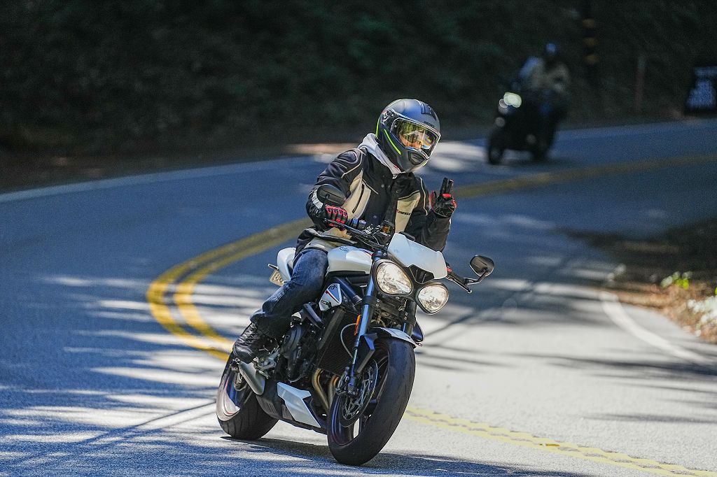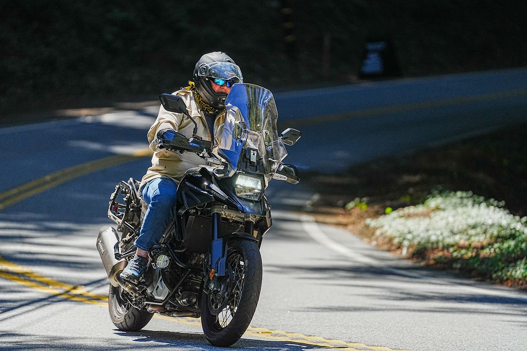 14.09., Sonntag: Um 11h Aufbruch zu einer Motorradtour, Robin auf seiner Triumph, ich auf seiner Suzuki. Robin kennt hier wirklich tolle Strecken. Ein Fotograf hat seine Geschäftsidee, Motorradfahrer zu fotografieren, selbst mich als „lahme Ente“ hat er aufgenommen – allerdings verlangt er für Fotos ohne Wasserzeichen 5,- USD.