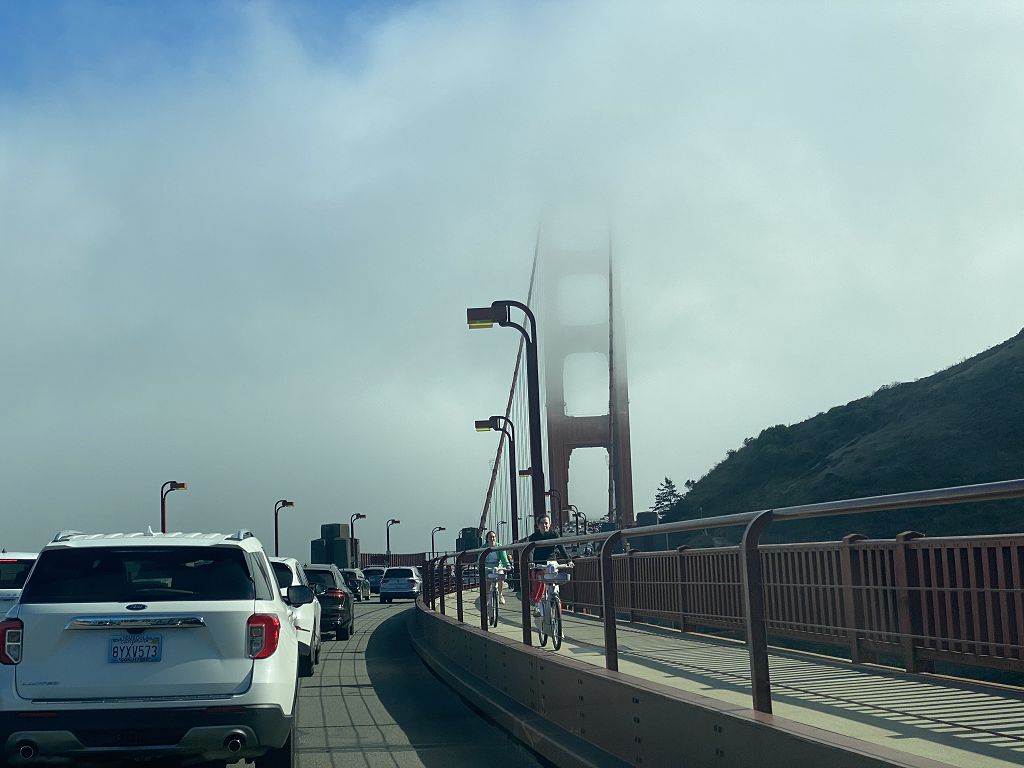 Die Tour über die Golden Gate Bridge war durch starken Nebel nicht ganz so fotogen, aber das gehört hier zum „Lokalkolorit“!