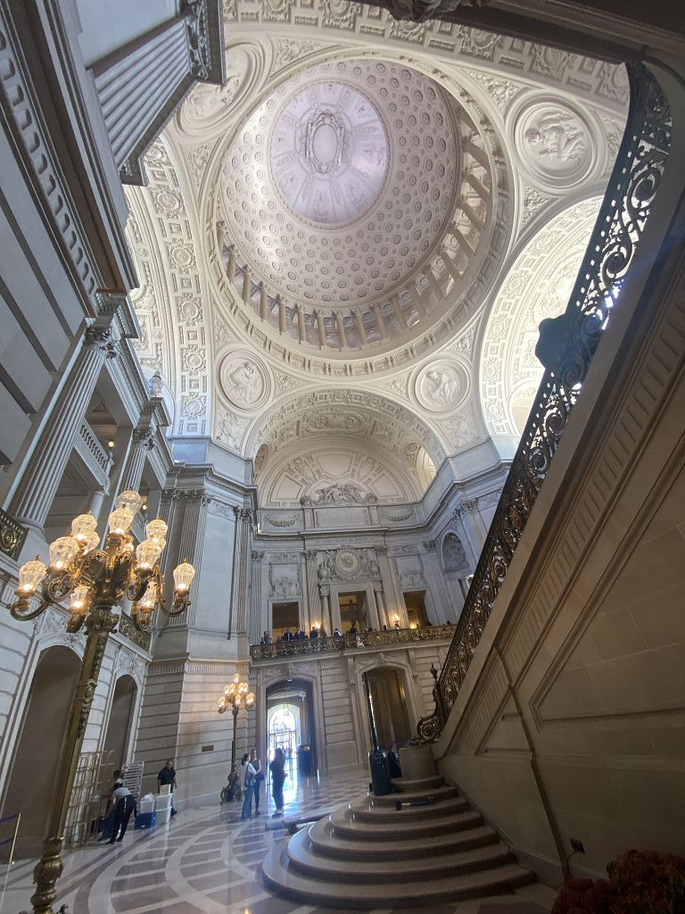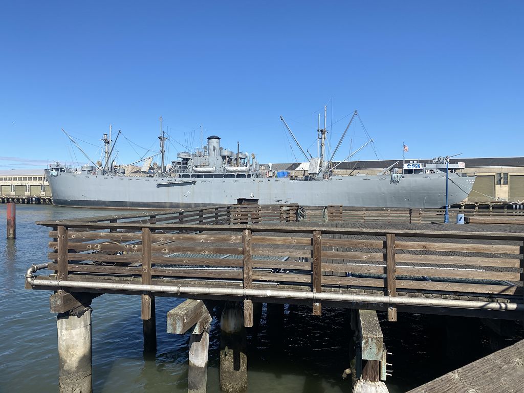 19.09., Freitag: Noch einmal SFO ins Civic Center mit: Library, City Hall, Veteran Building War Memorial (hier wurde die UN nach dem 2. WK gegründet, das fast identische War Memorial Opera House und die Symphony Hall. Die moderne St. Mary’s Cathedral war innen sehr interessant Schließlich noch einmal zur Bayside, heute mit der Golden Gate Bridge OHNE NEBEL!! Beim letzten Bummel hier entlang hatte ich das „Liberty Ship“ nicht ausreichend beachtet: Von 1941 bis 45 wurden an jeden Tag in 18 Werften bis zu 1,5 dieser Schiffe fertiggestellt!