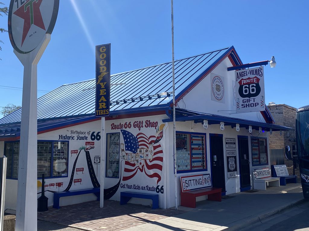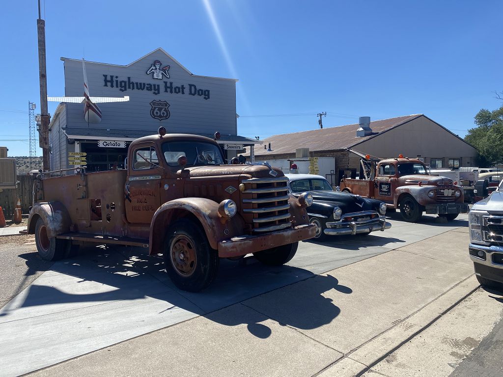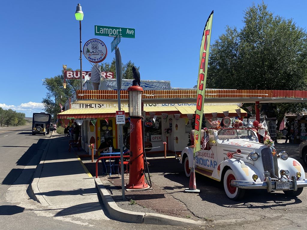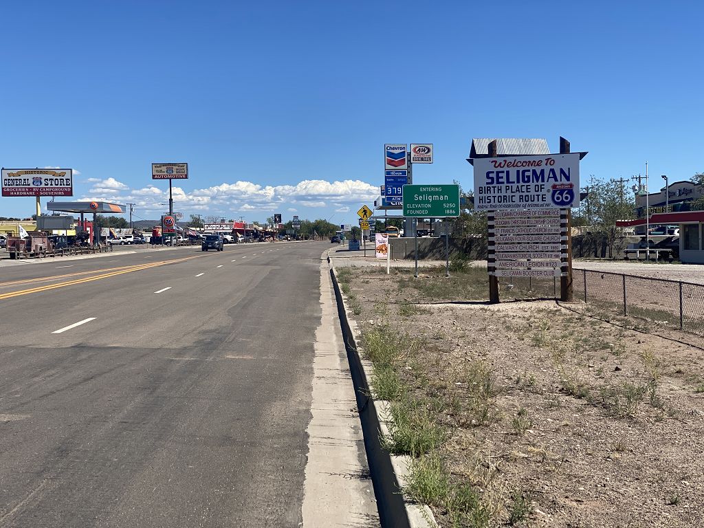 24.09., Mittwoch: Petrified Forest war das Ziel für heute, da es dort wesentlich niedrigere Temperaturen werden sollen. Allerdings sind das 600 km, daher in Seligman auf der Route 66 erst einmal Rast gemacht.