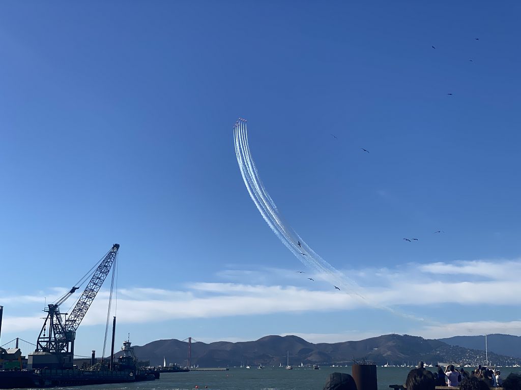 12.10., Sonntag: Robin, JJ und ich zusammen mit den ÖFIS nach SFO, da hier eine Militärschau ist. U. a. mit Flugschau über der Bay – wirklich beeindruckend! Aber erst einmal eine Parade von Chinatown bis „Little Italy“.