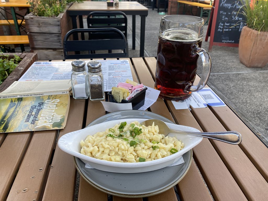14.10, Dienstag: Das Olymp hat von 15 bis 17:30h Happy Hour! 🙂 D. h. das Andechs kostet nur 2/3 vom Oktoberfestpreis (ca. 10,-€!). Das konnte ich mir nicht entgehen lassen. Gegen den Hunger dann noch recht leckere Käsespätzle.