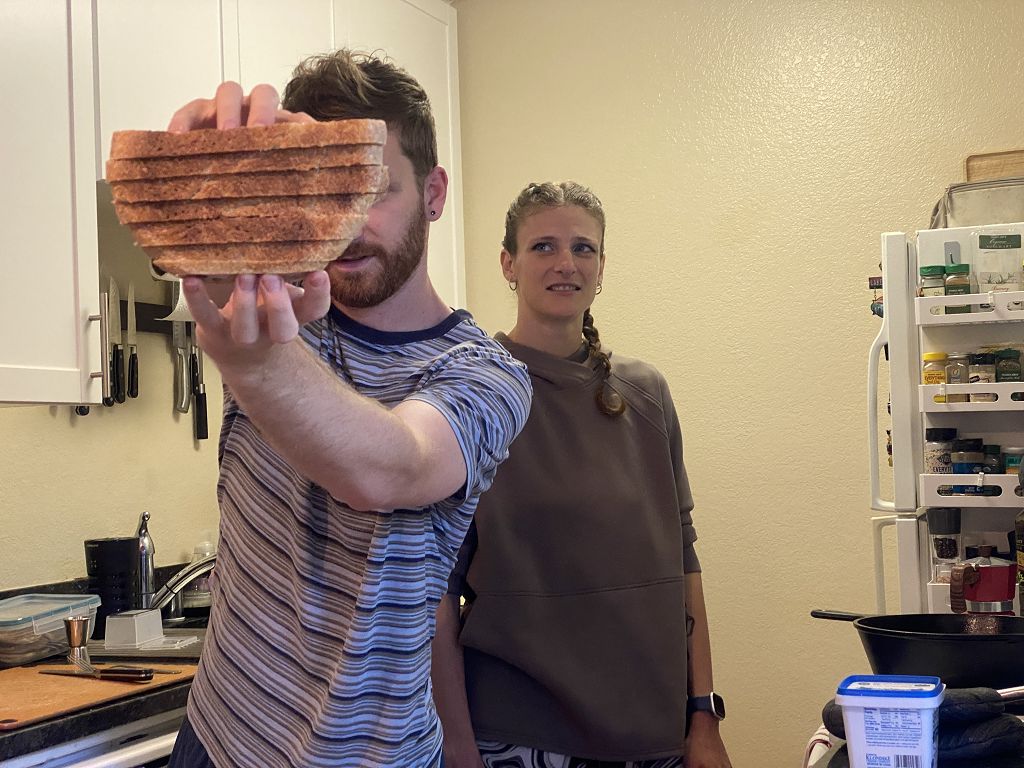 17,10., Freitag: Div. Erledigungen und Abends bei Jess und Colin lecker essen. Stolz präsentiert er sein selbst gebackenes Brot was leider bei Jess nicht auf soviel Begeisterung stößt wie bei Robin, JJ und mir. 🙂