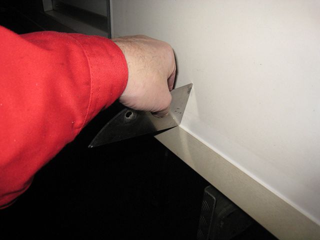 Kleber musste mit einer Ziehklinge entfernt werden und anschließend neu Kleber