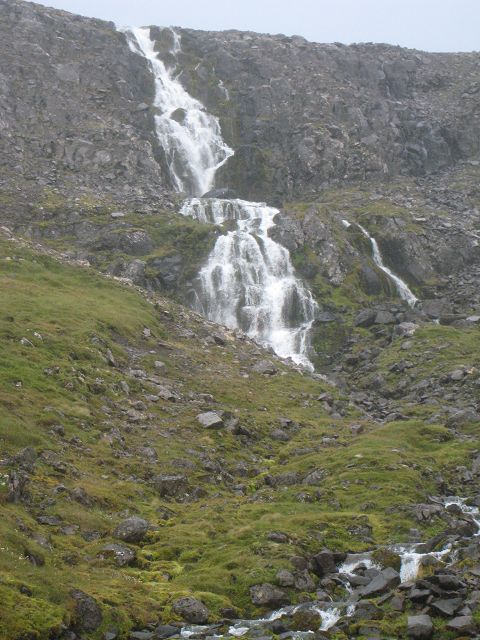 danach geht es wieder in Serpentinen herunter und unten sieht man dann schon den Dynjandi, den wohl bekanntesten Wasserfall der Westfjorde.