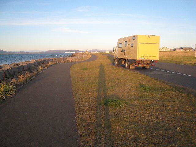 Trotz strahlendem Sonnenschein fuhr ich bedrückt weiter nach Akranes und dann durch den Tunnel unter dem Fjord Hvallfjörður hindurch auf der „1“ nach Reykjavik, wo ich mich bei der Grotta zum Übernachten stellte.